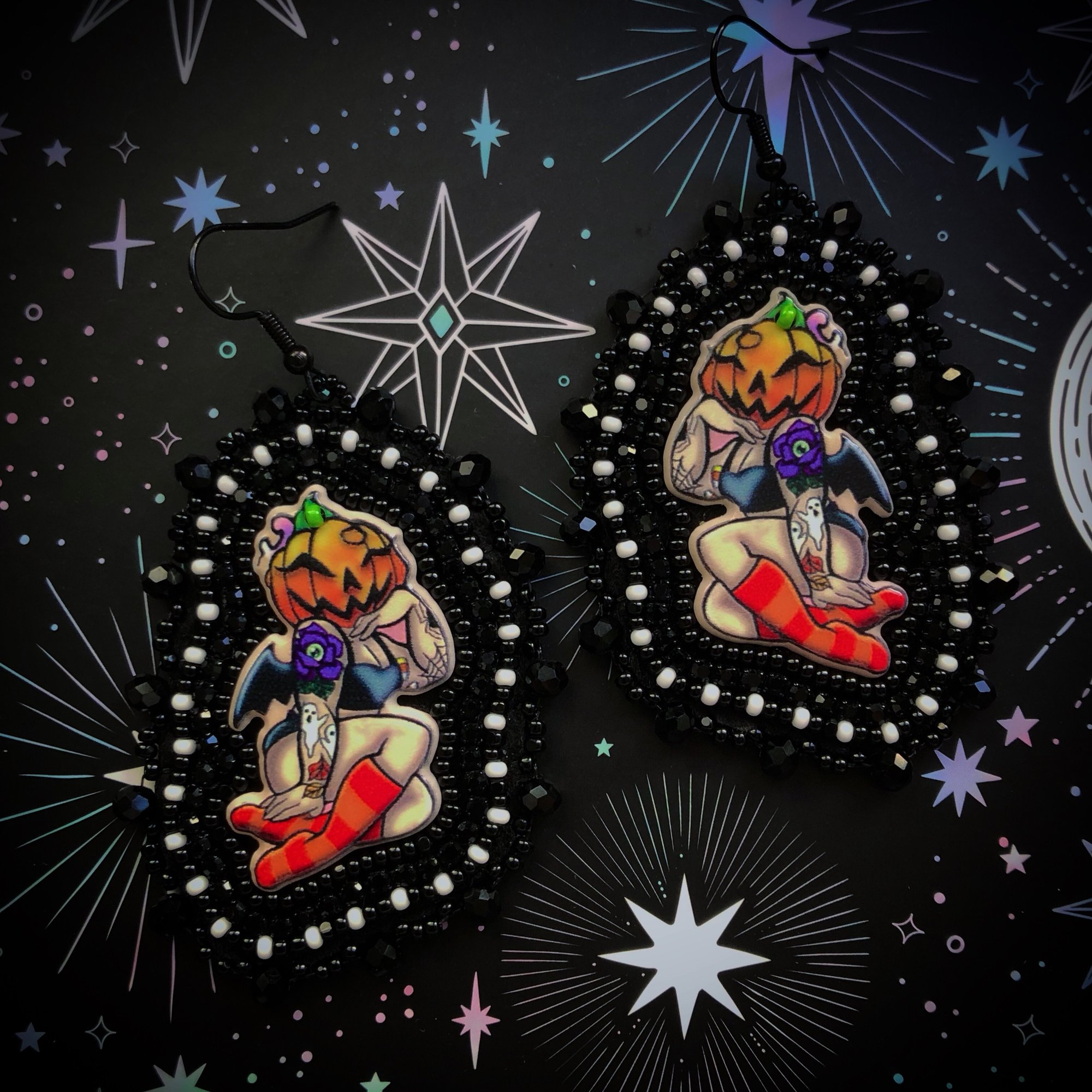 Halloween themed beaded earrings
